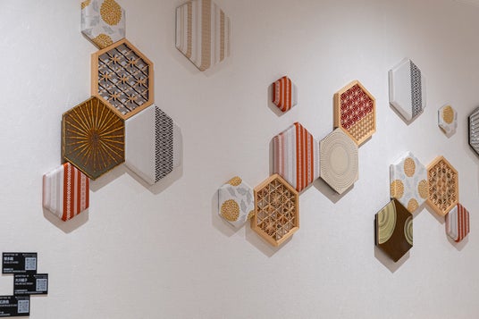 大川組子の壁面ディスプレイ