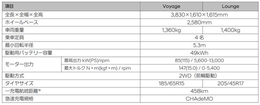 なお、2025年3月26日(水)付けで、国土交通省より型式指定認証※4を取得したことにより、一充電走行距離(WLTCモード)をはじめとした諸元値を公表いたします。型式指定認証の取得により、一充電走行距離(WLTCモード)は、「INSTER Voyage」と「INSTER Lounge」で458km※1となります。