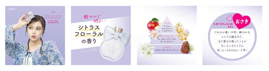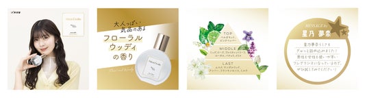 「ミニモアパフューム」は、気軽に香りを纏う楽しみを発信するために、Z世代最注目のタレント「星乃夢奈さん、おさきさん、ちせさん」の3名をミューズとしてお迎えし、個性豊かなラインナップの中から自由に、そして楽しく香り選びをすることを発信しています。