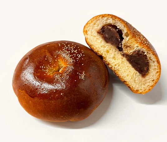 ひらみぱんの「能登大納言小豆あんぱん」は、リッチなブリオッシュ生地で、風味豊かな能登大納言小豆の粒あんを包み、仕上げにケシの実をまとわせて焼き上げました。バターの香る生地と上品な甘さのあんこが調和して、ティータイムにもぴったりの味わいです。