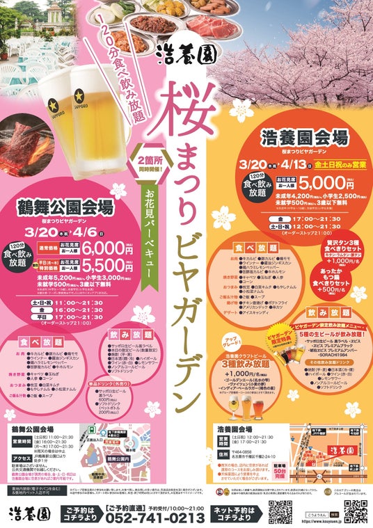 サッポロホールディングスのグループ企業である株式会社サッポロライオン(本社・東京都中央区、社長・三宅祐一郎)は、愛知県名古屋市の鶴舞公園で開催される「鶴舞公園桜まつり2025」において2025年3月20日(木)よりオープンしている「鶴舞公園 桜まつりビヤガーデン」の開催期間を、4月13日(日)まで延長します。また、名古屋のビールの名所「名古屋ビール園 浩養園」においても、3月20日(木)~4月13日(日)の期間、金・土・日・祝日限定でビヤガーデンを開催します。