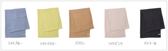 『ソフトガーゼショール』は、薄くて軽量でありながら優れた保温性を持つマシュマロガーゼ(綿100%)を使用しているため、年間を通じて様々なシーンで重宝します。カラーは洋服に合わせやすく、自然にもなじむライトブルー、ライトイエロー、ブラウン、ライトピンク、チャコールの5色展開。サイズは、羽織ったり、首に巻いたり、膝にかけても使えるよう、ゆったりとした78×200cmです。大判サイズながらかさばらない『ソフトガーゼショール』は、お出かけやキャンプ、ピクニックなどのアウトドアシーンはもちろん、おうちでのリラックスタイムにも使え、日常を心地よく彩ってくれます。