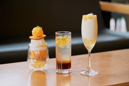 オレンジのフルーティーな甘さとアールグレイの上品な香りが広がる 「オレンジティーソーダ」、甘酸っぱいオレンジとヨーグルトを組み合わせ、爽やかな味わいを楽しめる 「オレンジヨーグルトシェイク」をご用意しております。4月限定の「ハニーオレンジパフェ」とご一緒にお楽しみください。テイクアウトにもおすすめの商品です。