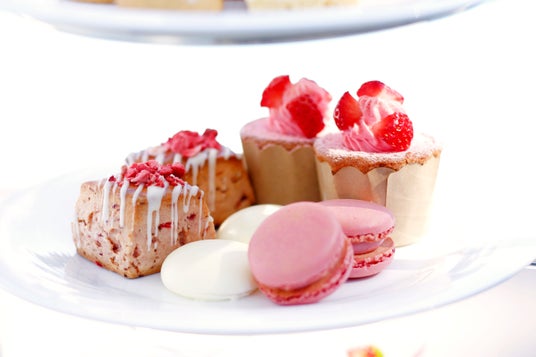 ストロベリースコーン、いちごシフォンケーキ、いちごマカロン、ホワイトチョコのメレンゲ