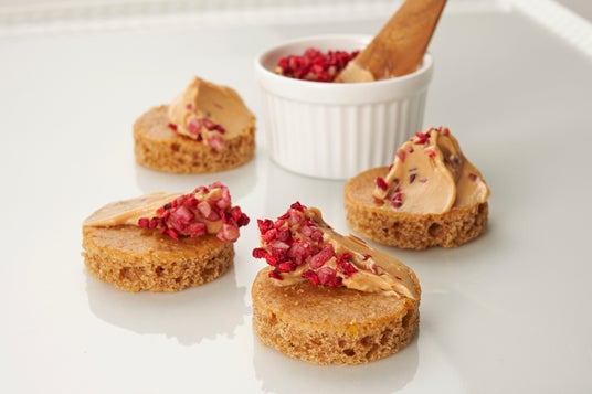 フォアグラのパルフェポルト酒で風味付けしたフォアグラと、上質な北海道産バターを合わせ、なめらかな舌触りのクリーム状に仕立てたフォアグラ・ブール(Fois gras beurre:フォアグラバター)に、フリーズドライのフランボワーズ(ラズベリー)とアーモンドをトッピングしました。お祝いの日にふさわしいリッチな一品です。