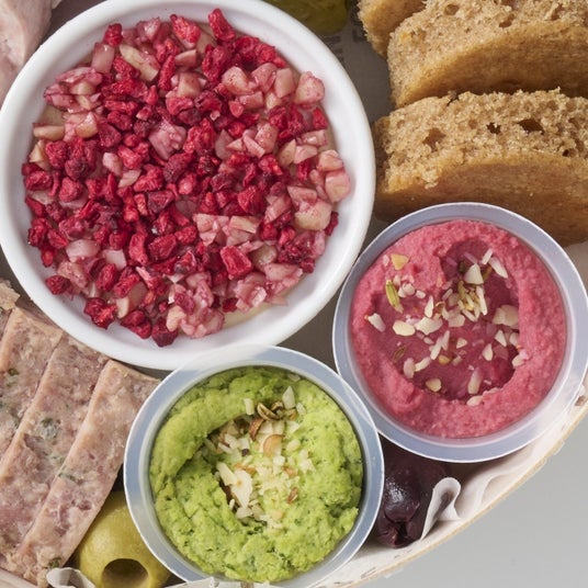 ・ディップ:ビーツのフムス、プティポワとケールのフムス