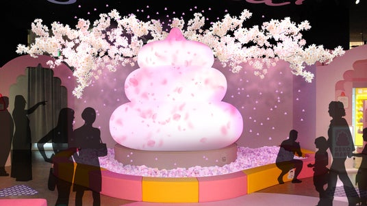 毎年好評の、うんこと桜のコラボレーションが今年も登場。「うんこミュージアム TOKYO」の名物「ウンコ・ボルケーノ」のまわりに桜が咲き誇り、”ウンスタ映え”抜群のここでしか見れない「うんこ桜」が登場します。また、「ウンコ・ボルケーノ」もいつものフン火から、「みんなで咲かせるうんこ桜」に期間限定でアップデート!音楽に合わせて「うんこ~」「さくら~」とみんなで叫ぶと、つぼみから3分咲き、5分咲きと、どんどん開花していき、フン火すると桜色のうんこスポンジが降ってきます。