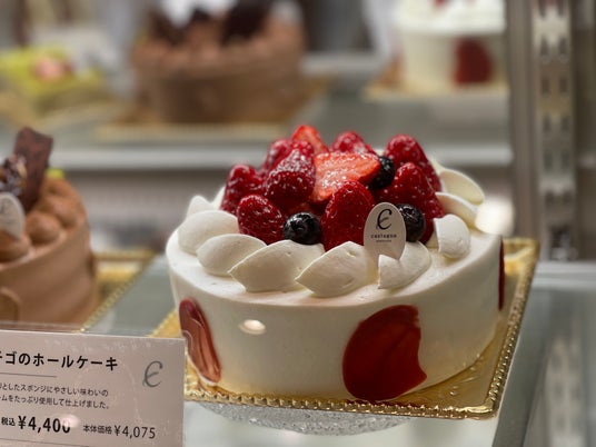 産地にこだわったイチゴを使用した王道の「イチゴのホールケーキ」は目を引く鮮やかなデコレーション。