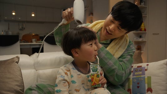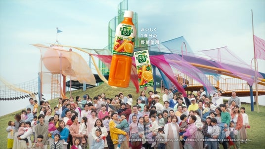 合唱は続き、親に駆け寄る子どもたちと、そんな子どもたちを抱きとめる親たちの優しいまなざしが映し出されます。そして、「野菜生活100」をおいしそうに飲む子どもたちや劇団ひとりさんの笑顔とともに、「いつか大人になる君の、その元気を、いちばんそばで守りたい。だから、飲も。いっしょに。」という、愛にあふれたメッセージが語られます。