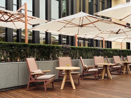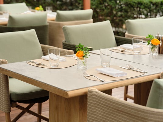 Kettalのモダンな家具を配し、新たな装いでリニューアルした「エンバ・キョウト・グリル」のテラス席