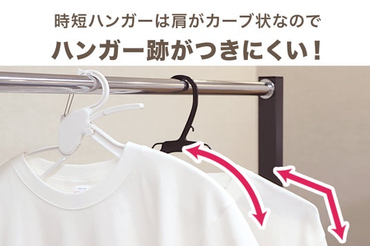時短ハンガーは従来のハンガーとは異なり、肩部分がカーブ状にデザインされています。