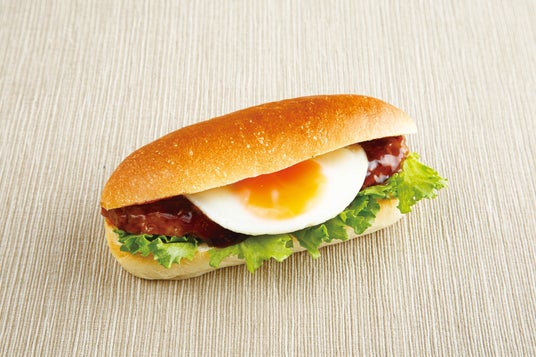 照り焼きハンバーグに大きな目玉焼きをのせた食べ応え抜群のコッペパン。しっかりと絡んだ照り焼きソースとハンバーグ・目玉焼きとの相性抜群。