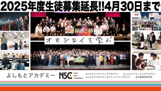 国内最大規模のお笑い養成所「NSC」、即戦力の裏方スタッフを育てる「よしもとクリエイティブアカデミー」、歌唱・演技などを学ぶ「よしもとパフォーミングアカデミー」、デジタルエンタテインメントを学ぶ「よしもとデジタルエンタテインメントアカデミー」、この4校のカリキュラムを高校3年間で学ぶ「吉本興業高等学院」これら5校からなるよしもとアカデミーでは、この度、より多くの才能を受け入れるため、2025年度の生徒募集期間を4月30日(火)まで延長することが決定いたしました。