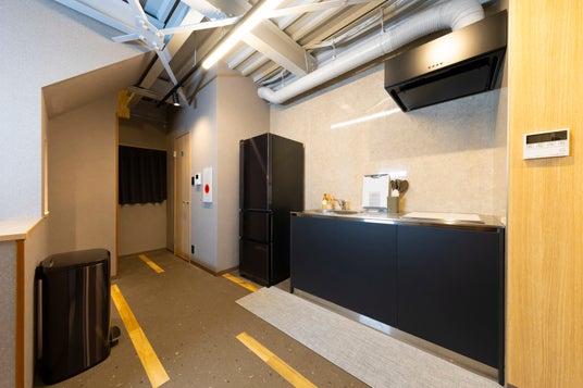 シンプルで機能的なキッチンには、調理器具や冷蔵庫、電子レンジなどを完備。滞在中の自炊やグループでの食事づくりにも対応しています。