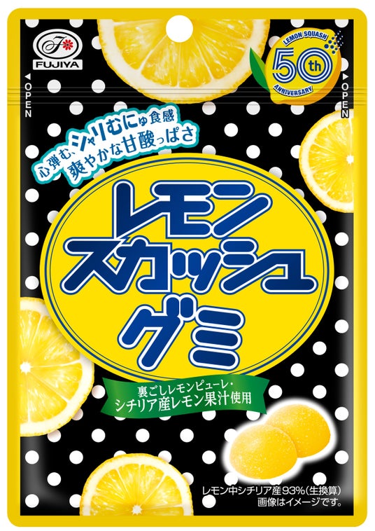 1975年(昭和50年)に発売した不二家のロングセラー飲料「レモンスカッシュ」は、今年で発売50周年を迎えました。こだわりのレモン果汁を使用した本格的な味わいと、シュワっとはじける爽快感が楽しめる商品です。50周年を迎えた今年、レモンスカッシュの味わいをより楽しめるプレミアムタイプの新商品が登場。飲料だけでなく、レモンスカッシュのおいしさを楽しめるチョコレートやグミも新発売し、50周年を盛り上げます。
