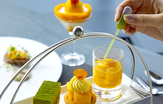 そのほか、グラスいっぱいにあしらったマンゴーを堪能するショートケーキのような「マンゴーパフェ」など、新緑や花々をイメージさせるラインアップをお楽しみいただけます。種類豊富な紅茶とともに、贅沢なひとときを心ゆくまでご満喫いただけます。