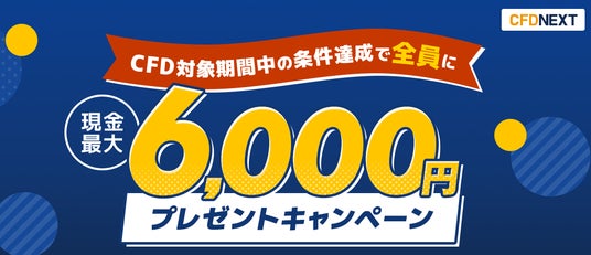 株式会社外為どっとコム(本社:東京都港区、代表取締役社長:竹内 淳)は、『CFDネクスト』におきまして、2025年3月31日(月)より「CFD対象期間中の条件達成でもれなく最大6,000円プレゼント!キャンペーン」を実施します。