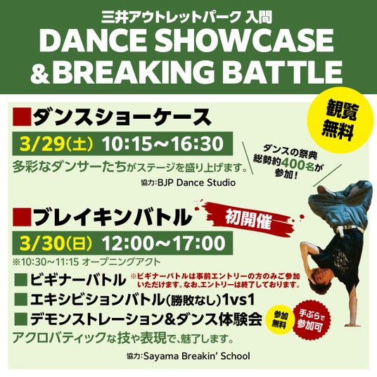 1.DANCE SHOWCASE&BREAKING BATTLE:3月29日(土)~3月30日(日)