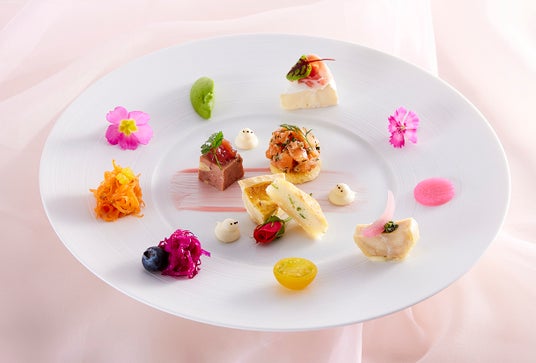 オードブルバリエ春をイメージした食材・お料理をバラエティ豊かにレイアウト。いろいろな味をお楽しみいただけるワクワクする一皿です。