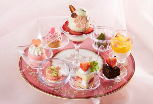 アシェットデセールシマエナガのベリーパフェを主役に、春の訪れを表現した桜や旬の甘酸っぱい苺をあしらった、かわいいピンクカラーのスイーツを集めました。