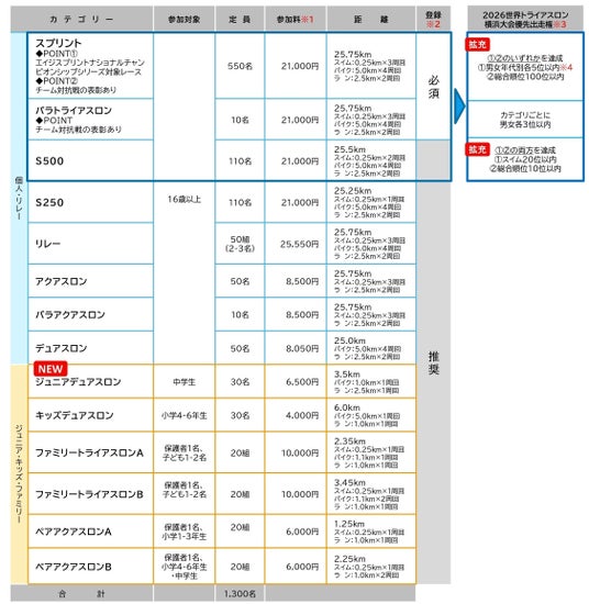成績上位者に「2026世界トライアスロン横浜大会」の優先出走権を付与します。今年は対象者、対象カテゴリーを拡充します(下部参照)。