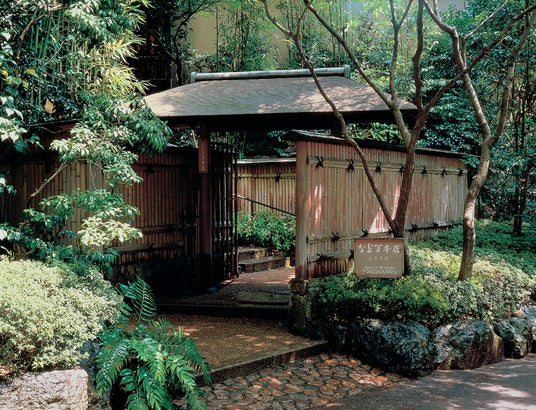 なだ万本店 山茶花荘は、1974年8月に大阪・今橋本店より、現在の場所へ移転しました。約一万坪の広大なホテルニューオータニの閑静な日本庭園の中に建つ、数寄屋造りの瀟洒な建物は、ホテルオーナーの大谷米一氏の旧邸であり、日本建築の第一人者、故・村野藤吾氏の設計による傑作といわれ、「都会の喧騒を忘れ、心からくつろぎを感じていただきたい」との願いがこめられております。