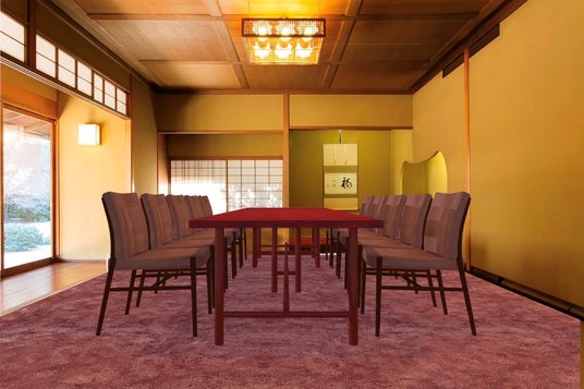 料亭といえば座敷のイメージがありますが、この度のリニューアルでは、今まで以上に多様なシーンでのご利用に対応するため、「葵の間」を掘りごたつ式からテーブル・椅子席に改装しました。特注のテーブルは天板が朱の漆塗り、椅子は貴重な国産広葉樹ブナ材を使用。出来るだけ軽量で、女性や高齢者の方でも使い心地のよいデザインがされています。また絨毯も踏み心地や遮音性、断熱性にこだわった毛足の長い特注品です。