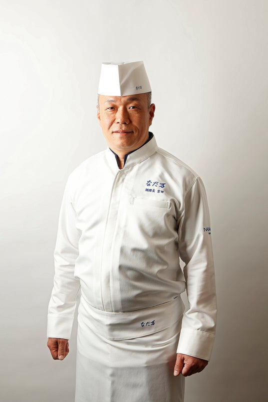 調理長の吉田武彦は独自の感性と確実な技術で、最高の食材を至極の一皿に仕上げます。海外店の経験も長く、広い視野を持ち、各国の料理技法を積極的に取り入れて、ストイックに味を追求しております。吉田の手掛ける料理には、「上海蟹」「トリュフ」など、日本料理には登場してこなかった食材も早くから取り入れており、国内外にファンが多く、その料理は多くのお客様を魅了してきました。