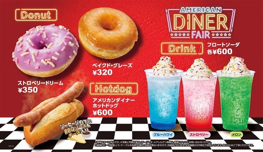 クラシックでファンシーな「ドーナツ」や、素材にこだわった「ホットドッグ」など、思い切りほおばれば、気分はアメリカン!ほかにも、鮮やかなグリーンやブルーが映えるフロートソーダなど、「イオンシネマ大日」だけのオリジナルメニューが登場します。