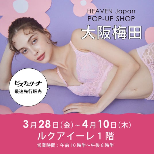 「下着でこんなに変わるんだ」が体験できる!自分にぴったりの下着を見て・試して・購入できる、HEAVEN Japanポップアップショップをルクア大阪で3/28~4/10まで開催。