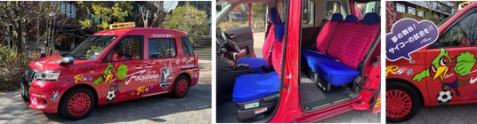 3月29日(土)からは、ファジアーノタクシーの乗務担当社員がファジユニを着て乗務を開始するほか、ご乗車いただいた方への記念として、ステッカープレゼントを開始いたしますのでお知らせいたします。