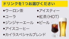 メインメニュー、デザート、ドリンクが選べる!最大1,100円以上がお得!