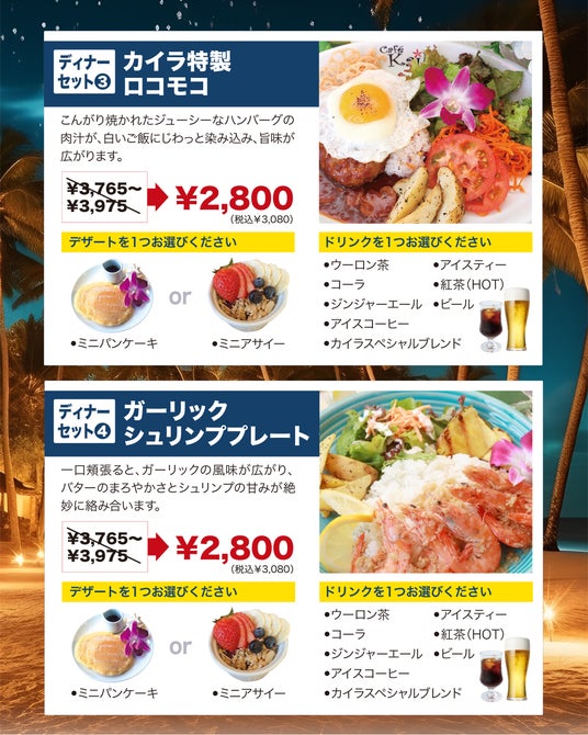 この機会に、カイラでお得にハワイアン料理をお召し上がりください。