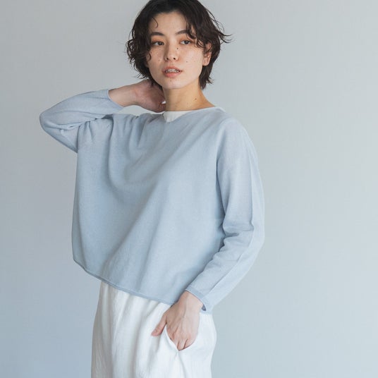 美濃和紙を使ったプルオーバー:「ペーパーヤーンライトニットプルオーバー / ブルーグレー」 15,400円(税込)