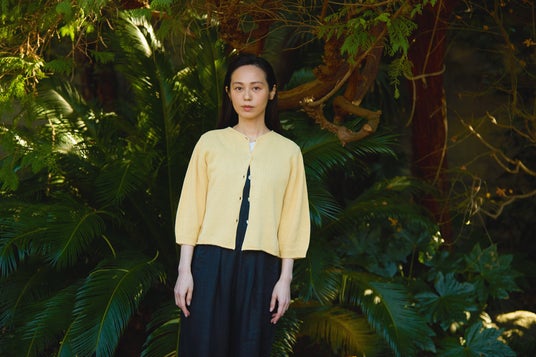 美濃和紙を使用したカーディガン:「ペーパーヤーンニットカーディガン / イエロー」 19,360円(税込み)