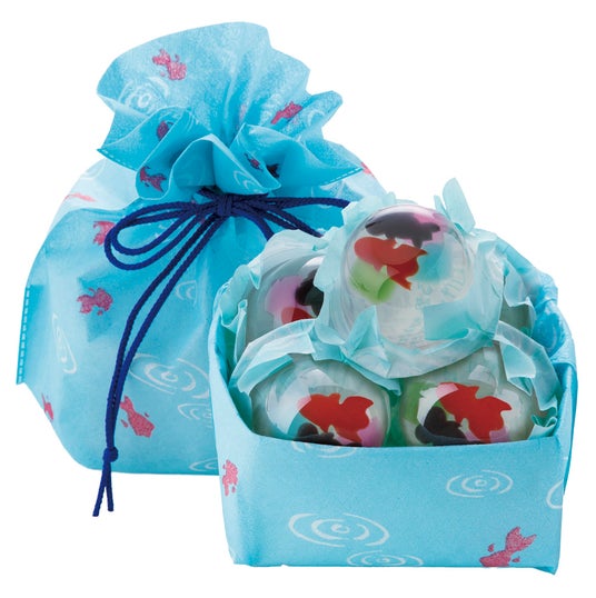 爽やかなゼリーに羊羹製の金魚を泳がせました。