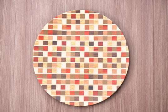 1)露木木工所と開発した、各年のテーマに合わせたオリジナルの寄木皿