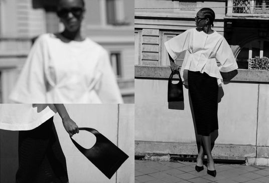 ブラウス ¥64,900(税込) スカート ¥56,100(税込) バッグ ¥46,200(税込)