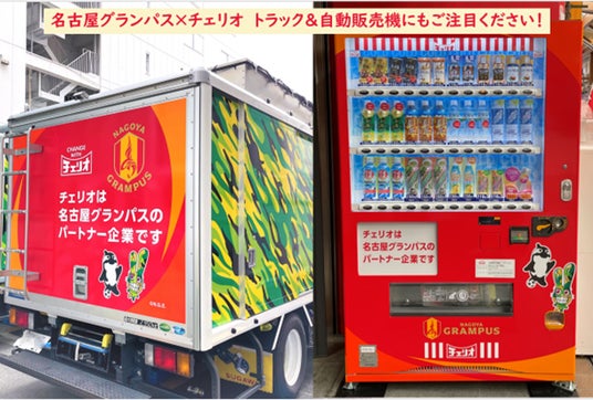 「チェリオ自動販売機」、「LIFEGUARD」でお馴染みのチェリオグループは、東海エリアにて60年以上に渡って「おいしい、たのしい、あたらしい」飲料の製造販売を行ってまいりました。愛知県の小牧工場等で製造した安心安全な飲料を販売する「チェリオ自動販売機」は、価格帯にこだわり、世代を超えた多くのお客様からご支持を頂いております。 当社は名古屋グランパスの『「町いちばん」のクラブ』というビジョンの元、地域イベントへの参加、子どもたちとのふれあいイベントの開催、清掃活動などのSDGsに基づく積極的な地域活動に共感し、パートナー契約に至りました。東海地域を盛り上げてきた名古屋グランパスを応援すると共に、チェリオは地元の皆様と一緒に!サポーターの皆様と熱く!地域社会の発展に寄与してまいります。