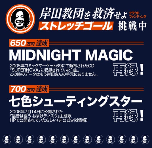 ストレッチゴール達成のリターンに掲げられた2曲は、岸田教団&THE明星ロケッツとして活動する以前に、リーダー岸田が制作した楽曲となります。