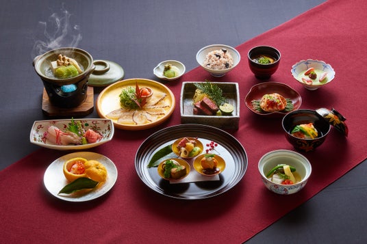 季節の食材を贅沢に使用した京会席コースをご提供。彩り豊かな前菜からメイン料理、締めの逸品まで、五感で楽しめるお料理をご堪能ください。