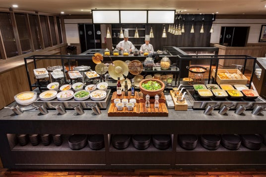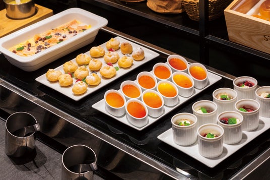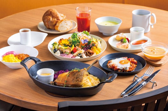 彩り豊かな神奈川県産の旬野菜をふんだんに使用したサラダバーに加え、野菜・魚介・肉・スパイスやハーブをふんだんに織り交ぜたブラスリー ミリーラ・フォーレ特製のビストロデリが常時10種並びます。洗練されたフレンチとビストロの素朴な味わいが調和した逸品の数々。季節のスープや本日の煮込み料理に、ホテルパティスリーが手がけるデザート、パン、香り高いコーヒーなどのドリンクもお好きなだけお楽しみいただけます。ヘルシーでありながら満足感に溢れる平日限定の優雅なランチタイムをぜひご体験ください。