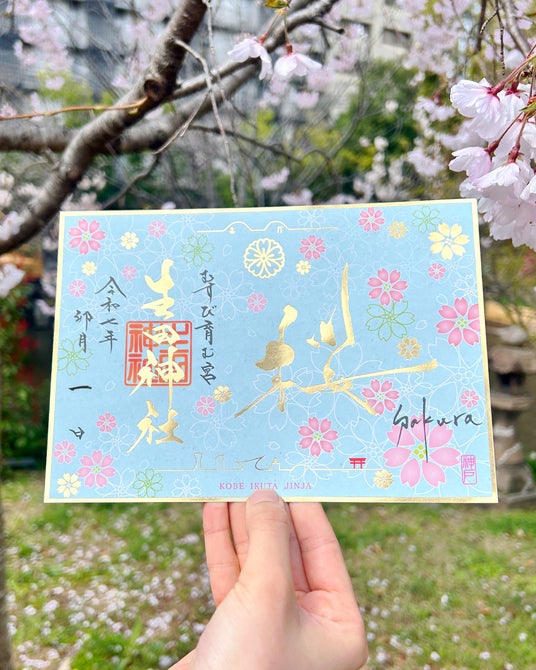 4月限定御朱印【さくら】この御朱印は、清らかな空気に包まれる神域の中、彩り豊かに咲き誇る満開の桜を神戸の街に配し、調製したものです。
