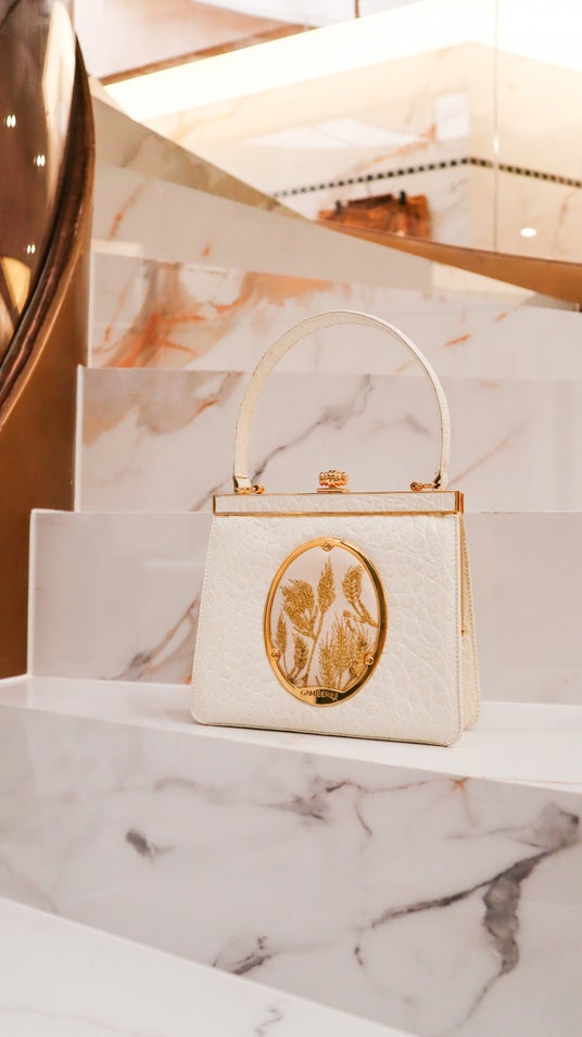 マリアバッグは、ガンベリーニバッグの「カメオ」コレクションのフラッグシップ商品であり、1950年代と1960年代のイブニングバッグの時代を超えた優雅さへのオマージュであり、現代的な洗練で再解釈されています。その構造的で彫刻的なシルエットは、ソフィア・ローレンやジーナ・ロロブリジダのようなディーヴァたちが優雅に身につけたアイコニックなアクセサリーからインスパイアされています。一方で、硬直した曲線のハンドルは、しっかりとしながらも effortless(手間をかけない)な洗練を伝えます。