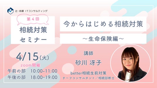 2025年4月15日(火)に無料セミナー「better相続生前対策 今からはじめる相続対策~生命保険編~」を開催いたします。