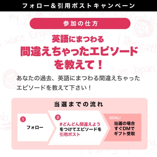 「スピーク」公式アカウントをフォローし、「#どんどんを間違えよう」をつけて英語にまつわる間違えちゃったエピソードを引用ポストしよう!