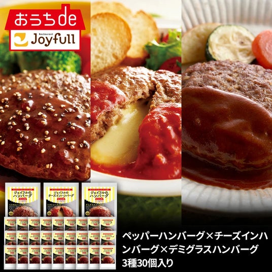 ジョイフル ペッパーハンバーグ × チーズ イン ハンバーグ × デミグラスハンバーグ3種 30個入り 生ハンバーグ/16,958円(送料無料)