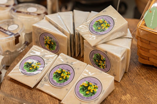 国際チーズコンテスト「ワールドチーズアワード2021」でスーパーゴールドを受賞した「翡翠」など約15種類のチーズが購入できるほか、自家製のケーキ、ピザ、ヨーグルトなどチーズ工房ならではのオリジナルアイテムが豊富に揃います。併設されたテイクアウトショップでは大人気の自家製生チーズソフトやカマンベールをたっぷり使ったホットドッグなどを販売。併設のデッキテラスから草屋根に登るかわいいヤギを眺めながら食べることができます。