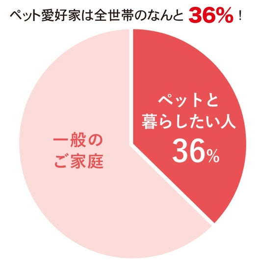 ペット愛好家は犬猫の飼育希望まで合計すると全世帯の36%に及び、犬や猫を中心としたペットと暮らす家庭は近年、右肩上がりに増えています。