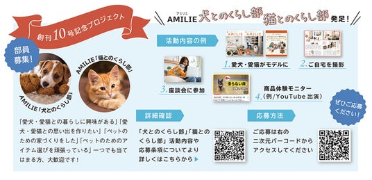 愛犬・愛猫との暮らしをもっと楽しく、毎日を思い出にしたい…という方々のために、AMILIEでは「犬とのくらし部」「猫とのくらし部」を発足!